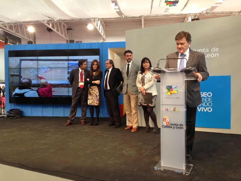 El presidente del Patronato de Turismo de Segovia y presidente de la Diputación Francisco Vázquez, acompañado por el diputado de Turismo, José Carlos Monsalve, ha presentado hoy en el marco de Intur las Rutas de Isabel la Católica y San Medel, y el nuevo trayecto del Camino de San Frutos.